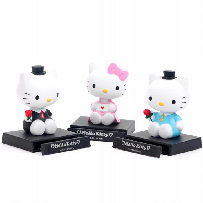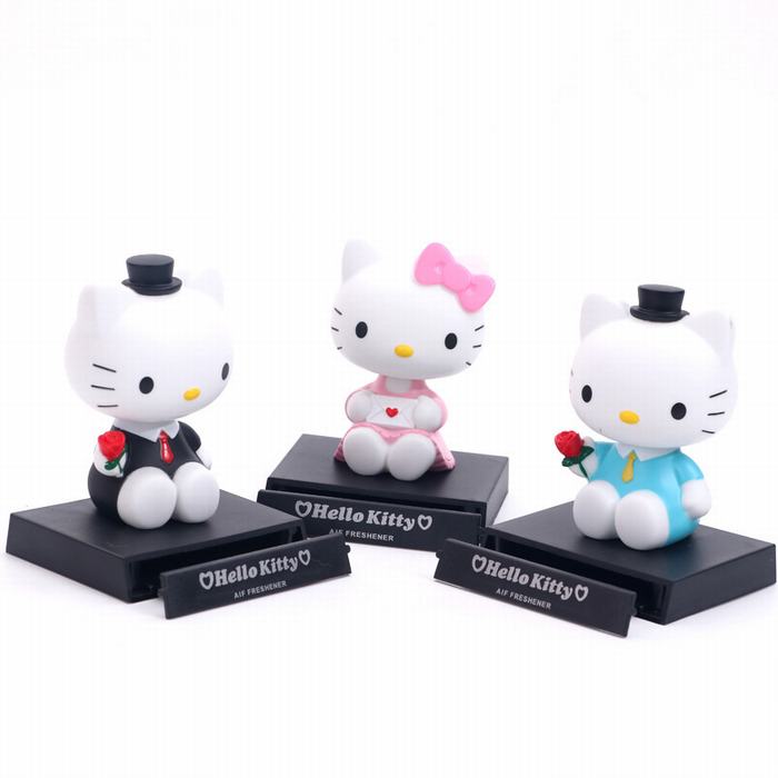 Hello kitty KT猫蓝色礼服摇头车载手机支架盒装小手办摆件