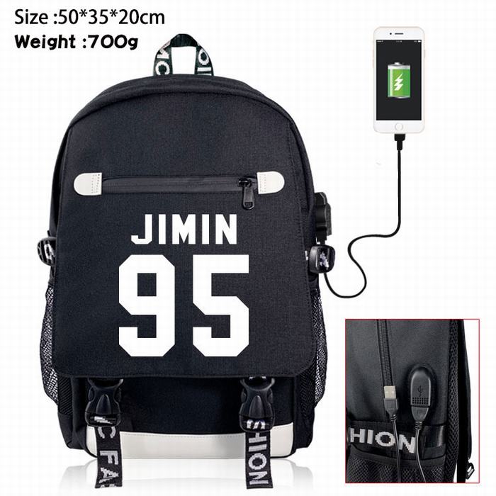 BTS防弹少年团JIMIN95帆布双肩包数据线背包