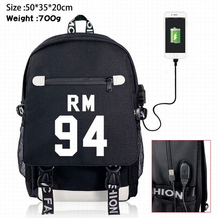 BTS防弹少年团RM95帆布双肩包数据线背包