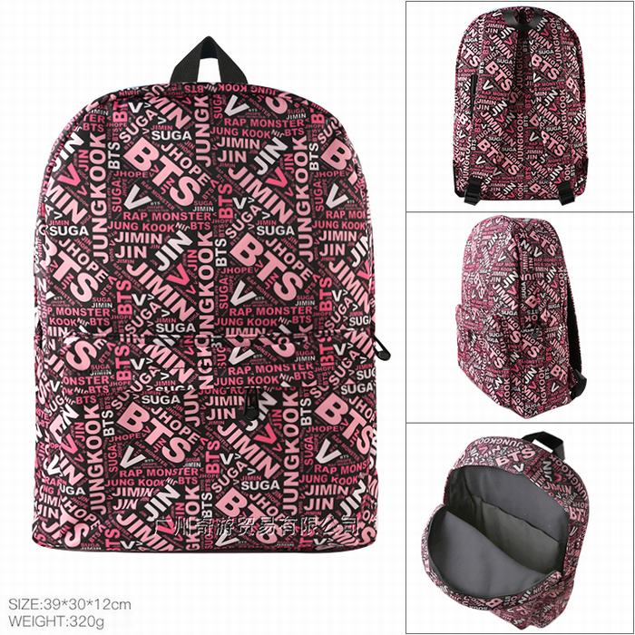 BTS防弹少年团BTS字母棉仿尼龙复合防水面料双肩包背包书包