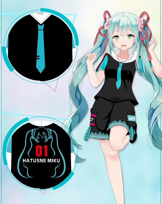 初音未来短袖T恤连帽印象卫衣拉链款M L XL XXL