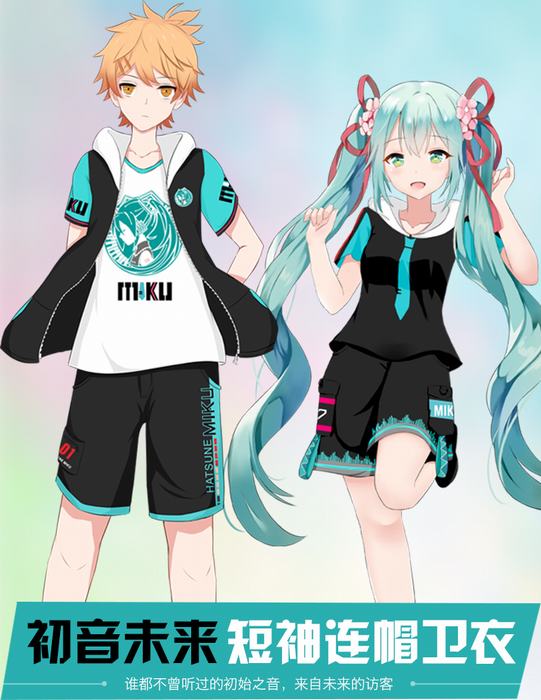初音未来短袖T恤连帽印象卫衣无拉链款M L XL XXL