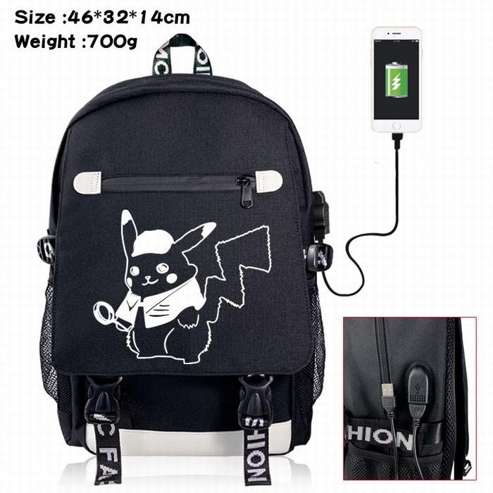 大侦探皮卡丘-C款帆布丝印双肩背包数据线背包