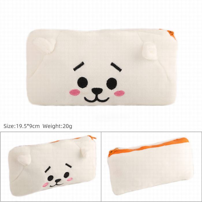 BTS 防弹少年团 白色小羊 毛绒布料3D文具盒卡通学生笔袋收纳袋包包 19.5X9CM 20G