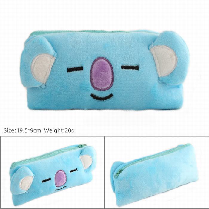 BTS 防弹少年团 蓝色考拉 毛绒布料3D文具盒卡通学生笔袋收纳袋包包 19.5X9CM 20G