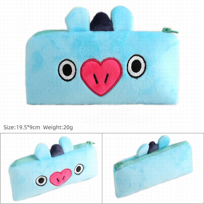 BTS 防弹少年团 蓝色小马 毛绒布料3D文具盒卡通学生笔袋收纳袋包包 19.5X9CM 20G
