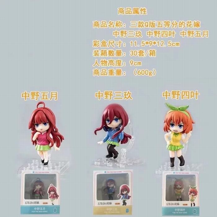 五等分的花嫁 Q版 3款一套 盒装手办摆件模型9CM 600G 11.5X9X12.5CM 一箱30套