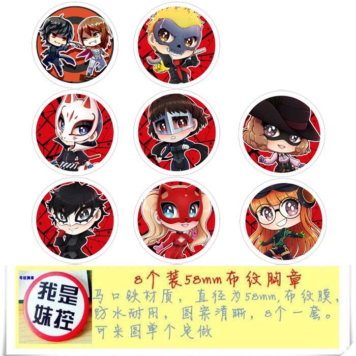 女神-1 动漫马口铁徽章胸章圆形布纹胸针 8款一套 58MM