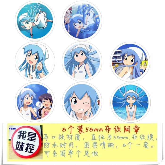 侵略乌贼娘 动漫马口铁徽章胸章圆形布纹胸针 8款一套 58MM