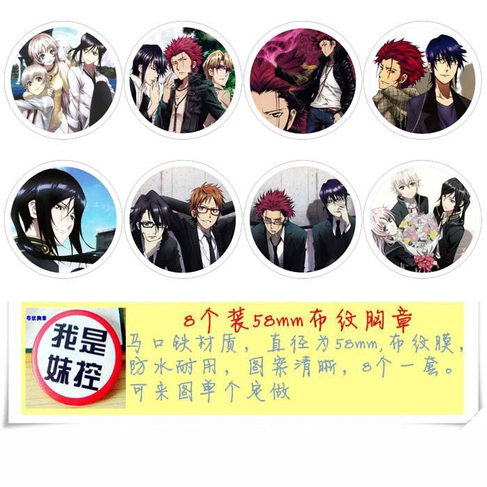 K 动漫马口铁徽章胸章圆形布纹胸针 8款一套 58MM