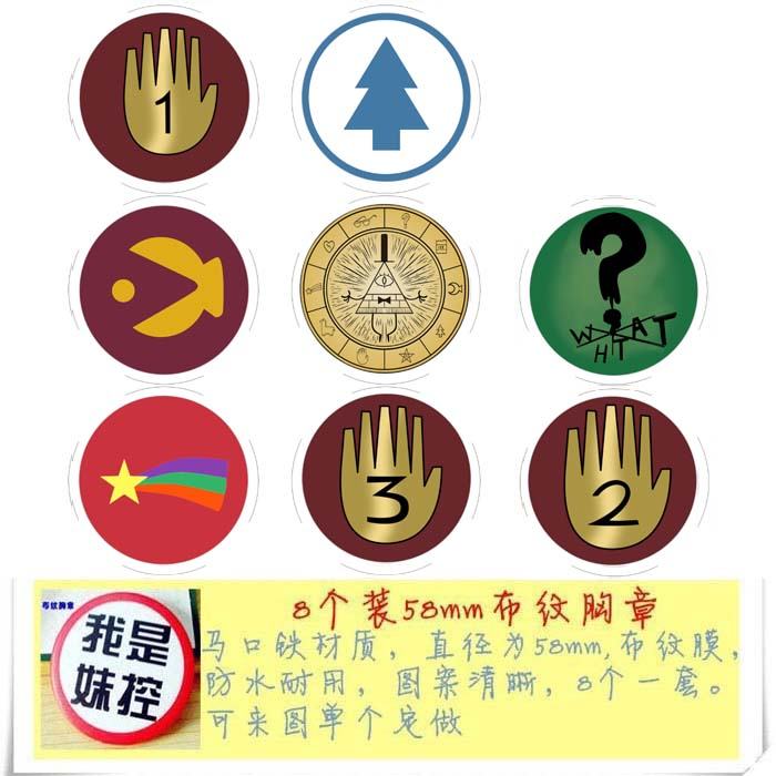 怪诞小镇-2 动漫马口铁徽章胸章圆形布纹胸针 8款一套 58MM