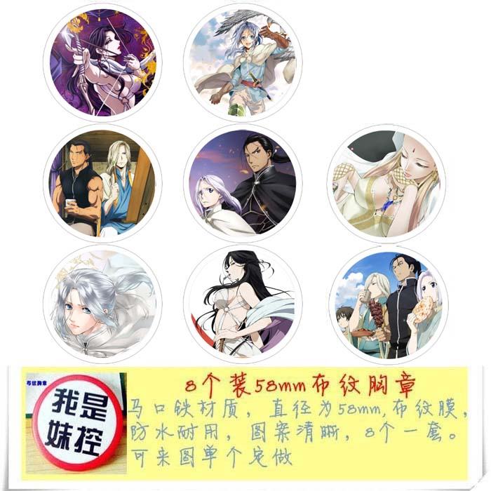 雅思蓝 动漫马口铁徽章胸章圆形布纹胸针 8款一套 58MM