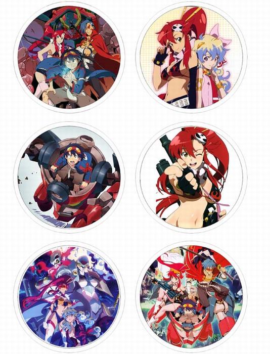 天元突破 动漫马口铁亮膜徽章胸章圆形布纹胸针 6款一套 75MM
