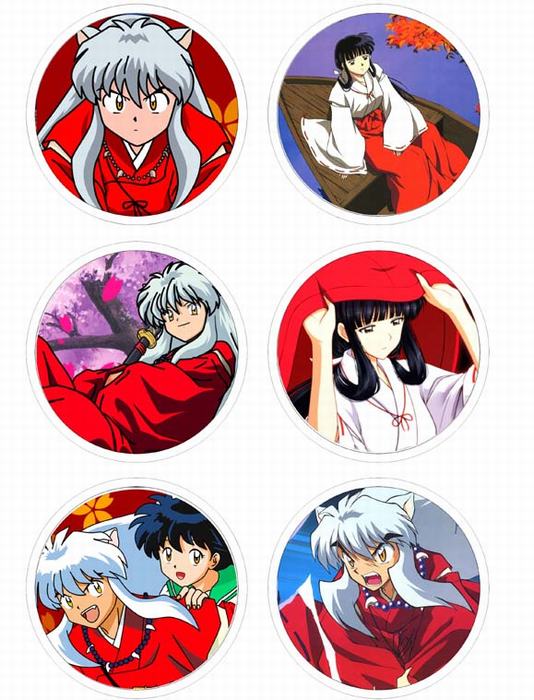 犬夜叉 动漫马口铁亮膜徽章胸章圆形布纹胸针 6款一套 75MM
