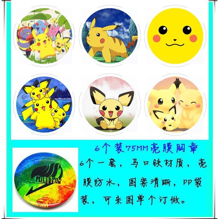 宠物小精灵 动漫马口铁亮膜徽章胸章圆形布纹胸针 6款一套 75MM