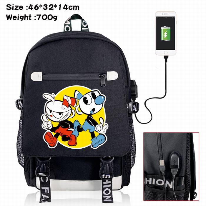 茶杯头-3A 黑色 彩印数据线双肩背包