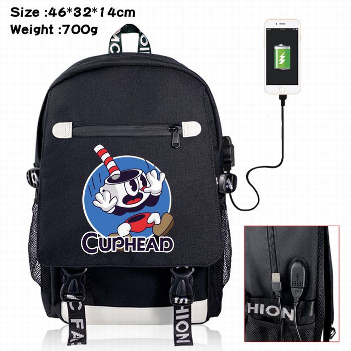 茶杯头-4A 黑色 彩印数据线双肩背包