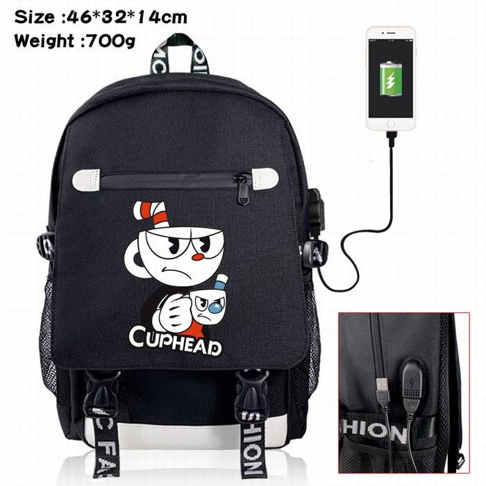 茶杯头-6A 黑色 彩印数据线双肩背包