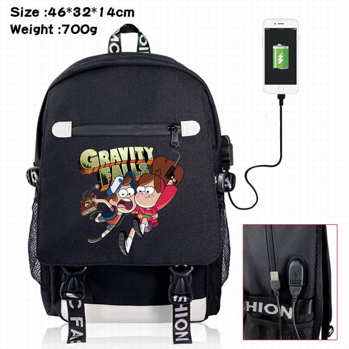 怪诞小镇-6A 黑色 彩印数据线双肩背包