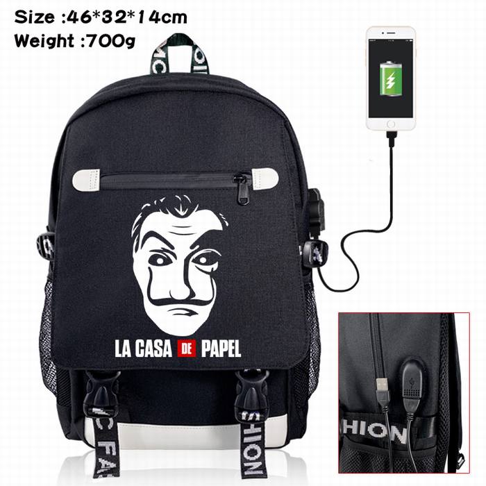 纸钞屋-12A 黑色 彩印数据线双肩背包