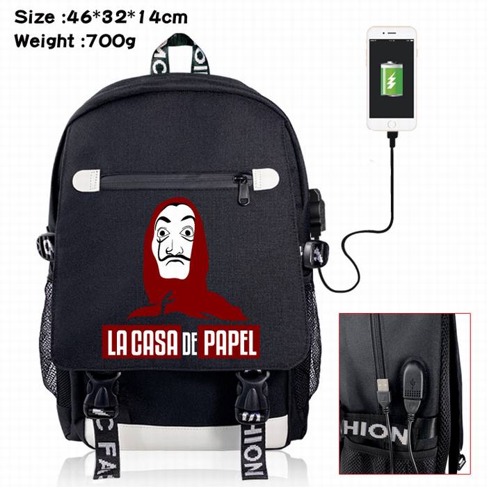 纸钞屋-17A 黑色 彩印数据线双肩背包