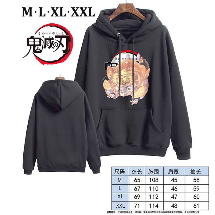 鬼灭之刃-10 黑色 印花带帽加绒加厚卫衣 M L XL XXL