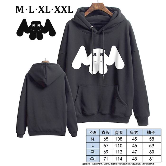 棉花糖-5 黑色 印花带帽加绒加厚卫衣 M L XL XXL