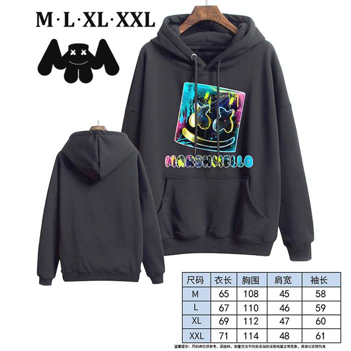 棉花糖-6 黑色 印花带帽加绒加厚卫衣 M L XL XXL