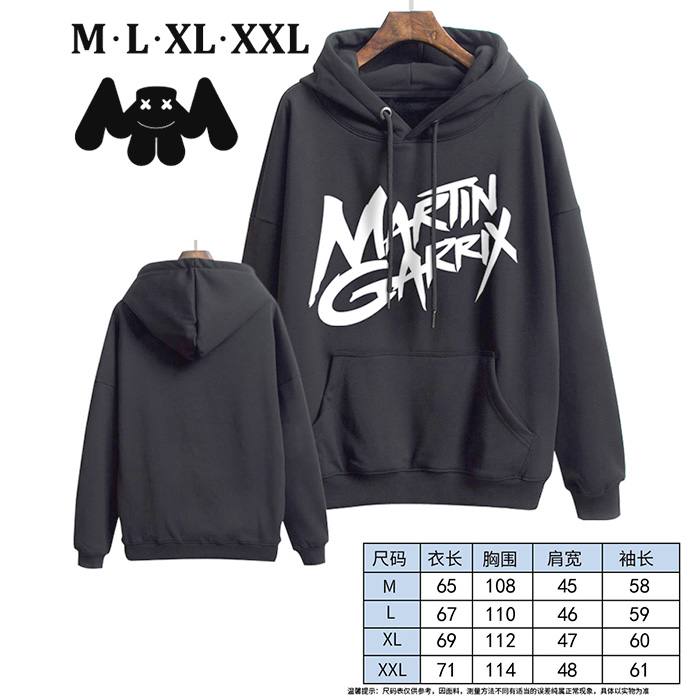 棉花糖-8 黑色 印花带帽加绒加厚卫衣 M L XL XXL
