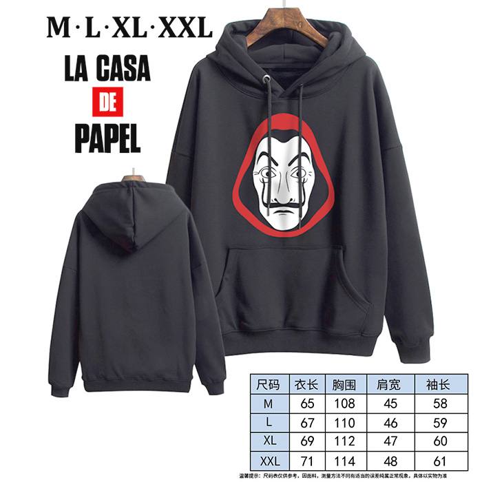 纸钞屋-1 黑色 印花带帽加绒加厚卫衣 M L XL XXL
