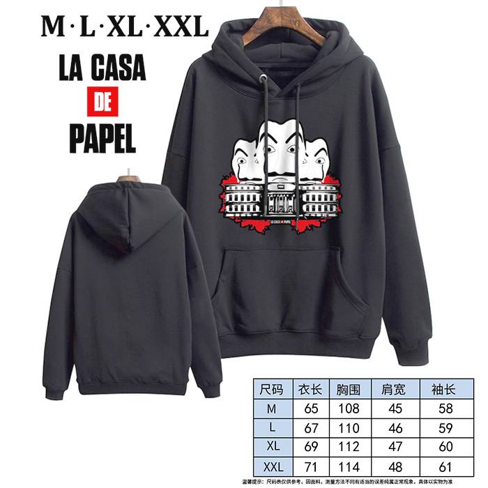 纸钞屋-9 黑色 印花带帽加绒加厚卫衣 M L XL XXL