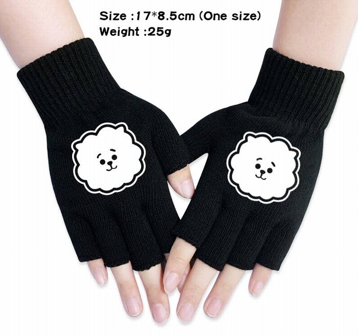 防弹少年团 BTS-26A 黑色 动漫针织半指手套