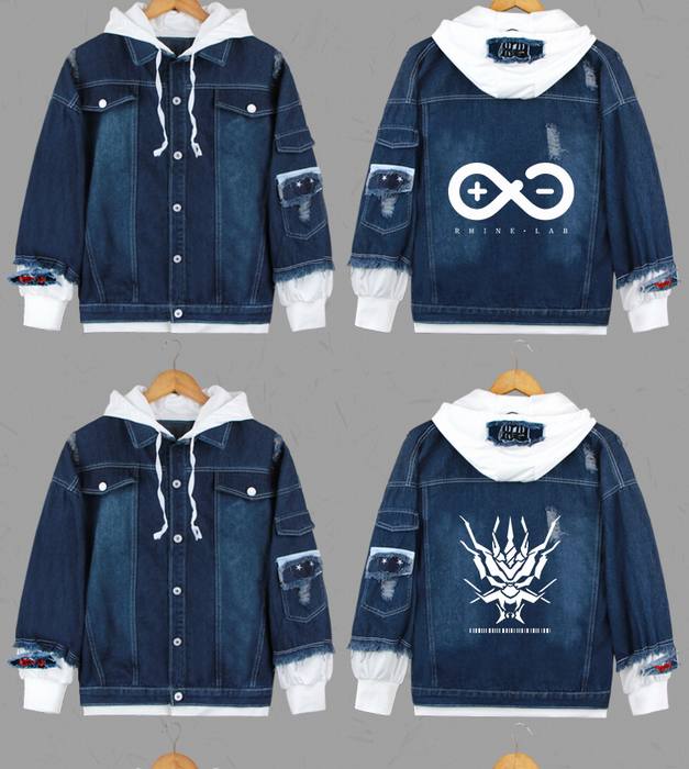 明日方舟-1 黑钢-浅色 假两件牛仔外套连帽夹克卫衣(白印花)S M L XL 2XL 3XL