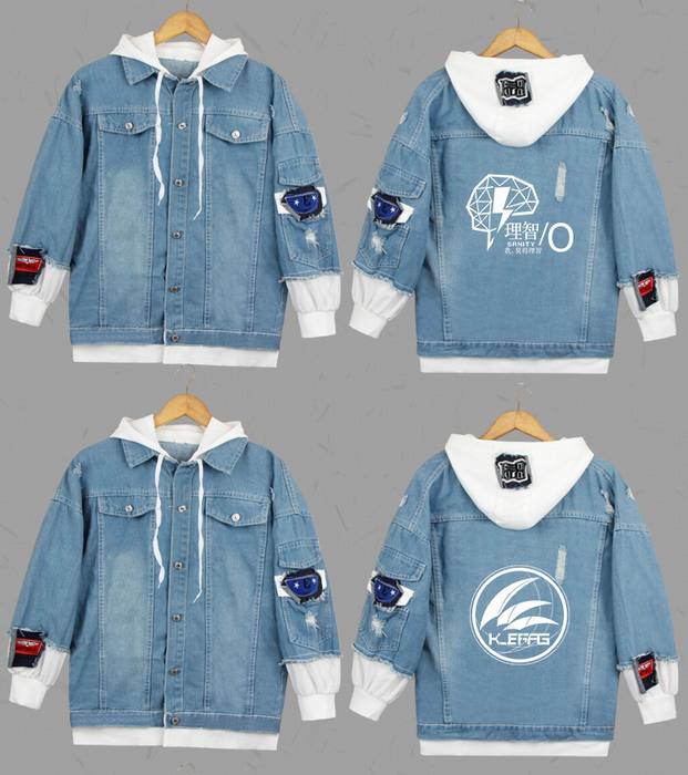 明日方舟-19 企鹅物流-浅色 假两件牛仔外套连帽夹克卫衣(白印花)S M L XL 2XL 3XL