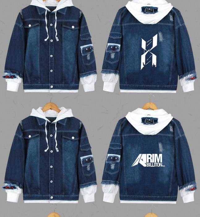明日方舟-4 喀兰贸易(谢拉格)-深色 假两件牛仔外套连帽夹克卫衣(白印花)S M L XL 2XL 3XL