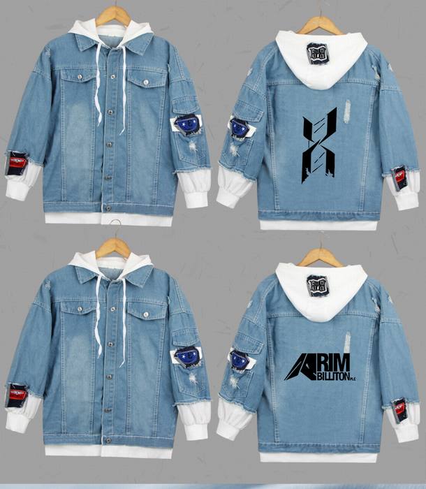 明日方舟-11A 雷姆必拓-浅色 假两件牛仔外套连帽夹克卫衣(黑印花)S M L XL 2XL