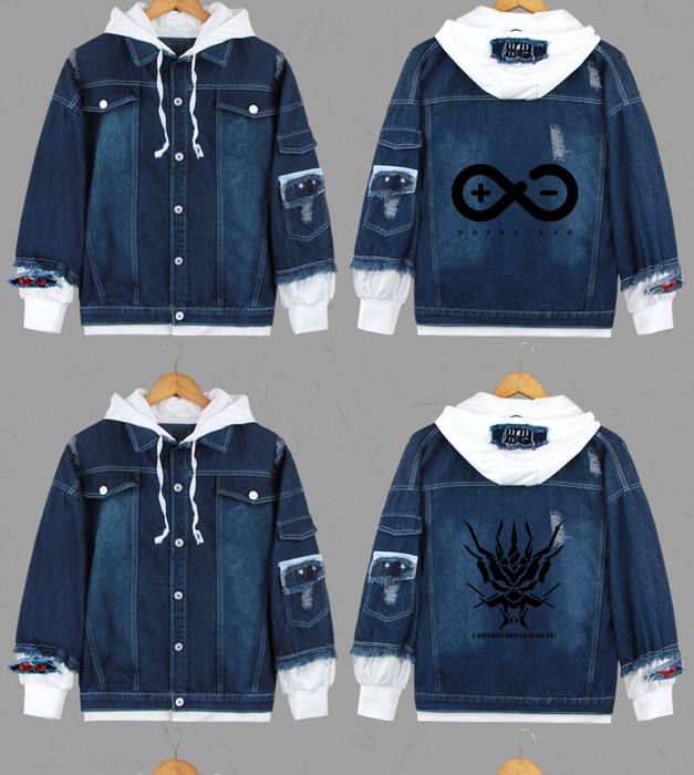 明日方舟-13A 龙门-浅色 假两件牛仔外套连帽夹克卫衣(黑印花)S M L XL 2XL 3XL