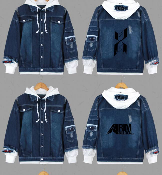 明日方舟-22A 乌萨斯-深色 假两件牛仔外套连帽夹克卫衣(黑印花)S M L XL 2XL 3XL