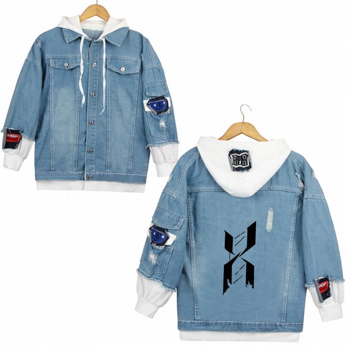 明日方舟-23A 整合运动-浅色 假两件牛仔外套连帽夹克卫衣(黑印花)S M L XL 2XL
