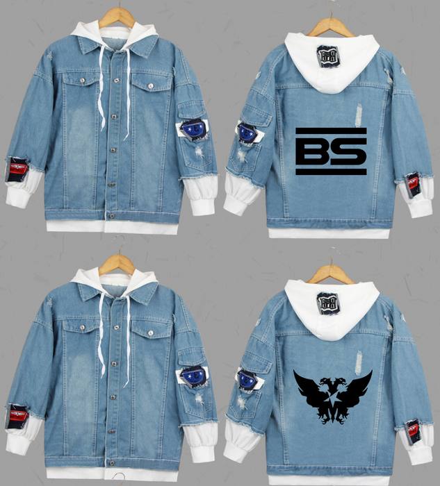 明日方舟-5A 卡西米尔-浅色 假两件牛仔外套连帽夹克卫衣(黑印花)S M L XL 2XL 3XL