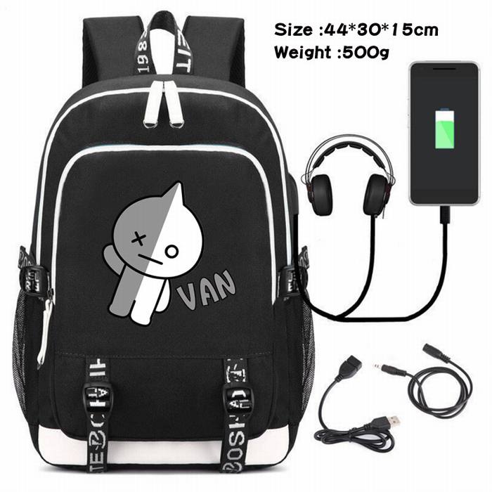 bts-005 防弹少年团 动漫USB充电双肩包数据线背包(双线接口)