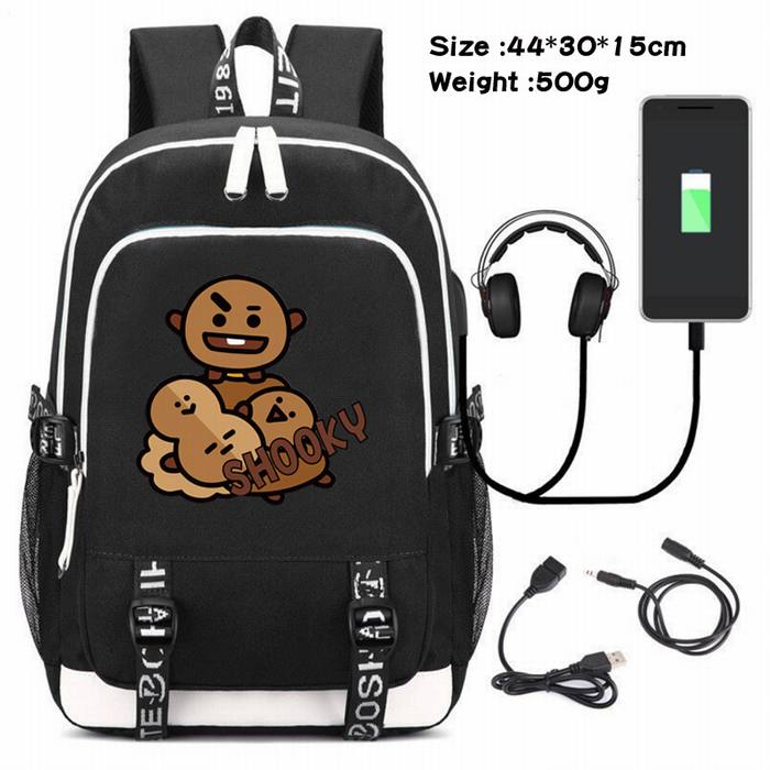 bts-008 防弹少年团 动漫USB充电双肩包数据线背包(双线接口)