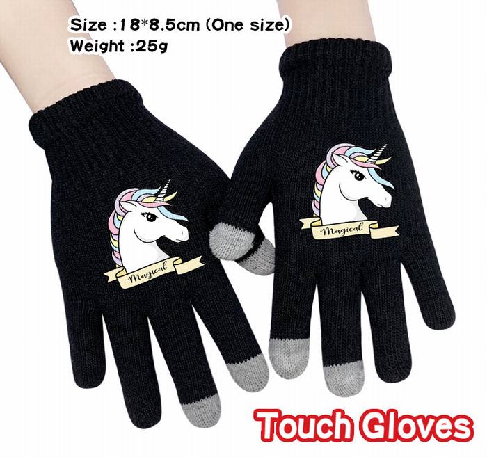 独角兽-10A 黑色 动漫针织全指触屏手套