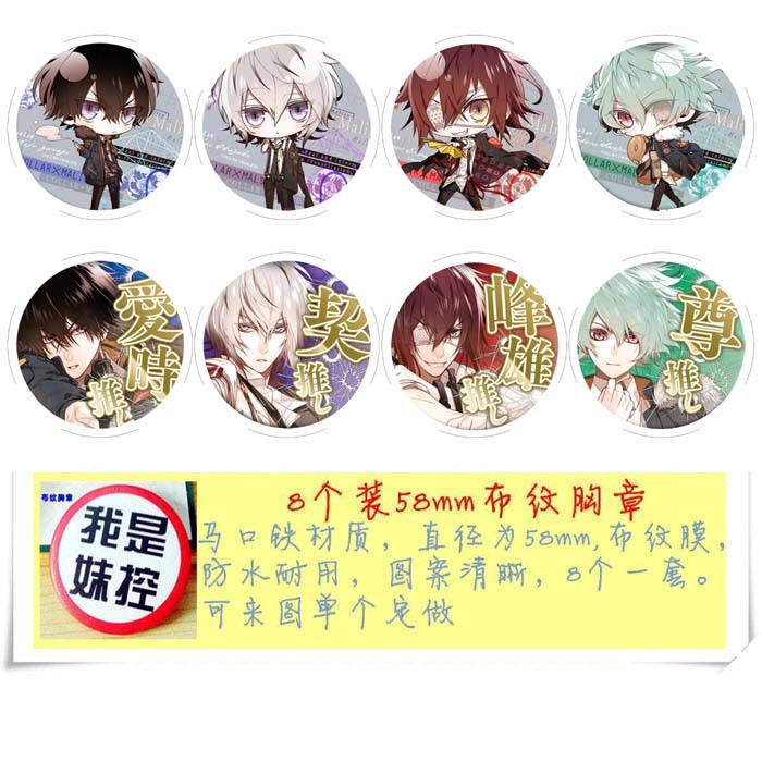 Collar 动漫马口铁徽章胸章圆形布纹胸针 8款一套 58MM
