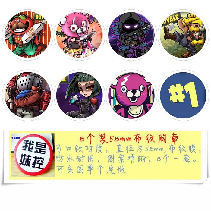 堡垒之夜 动漫马口铁徽章胸章圆形布纹胸针 8款一套 58MM