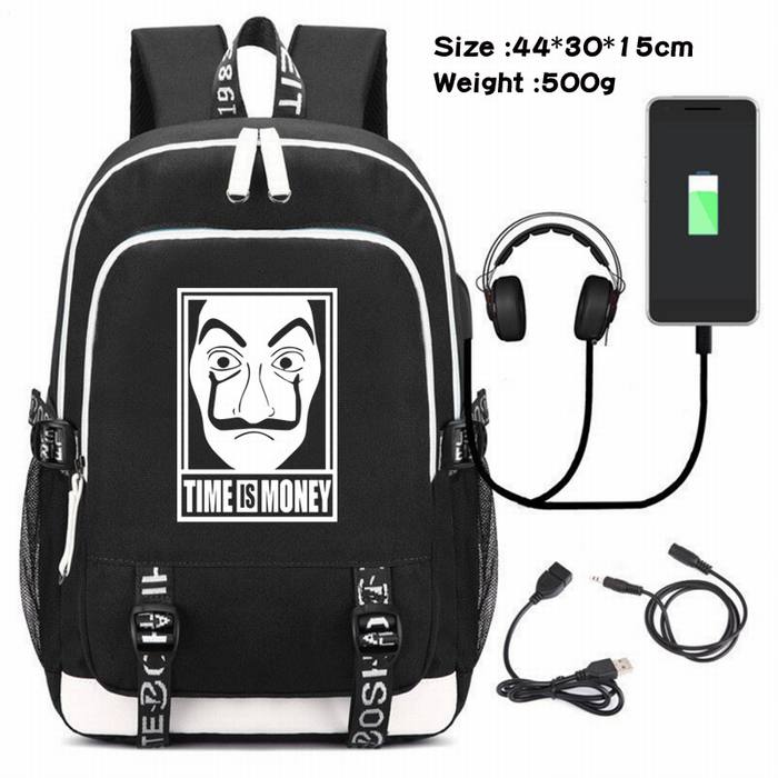 纸钞屋-243 动漫USB充电双肩包数据线背包(双线接口)