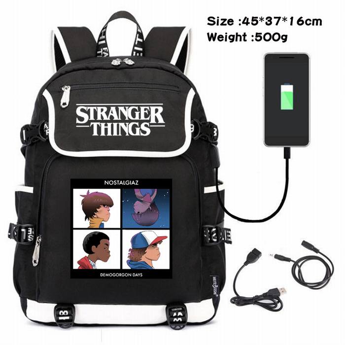 怪奇物语-086 动漫600D防水帆布双肩包USB充电数据线背包