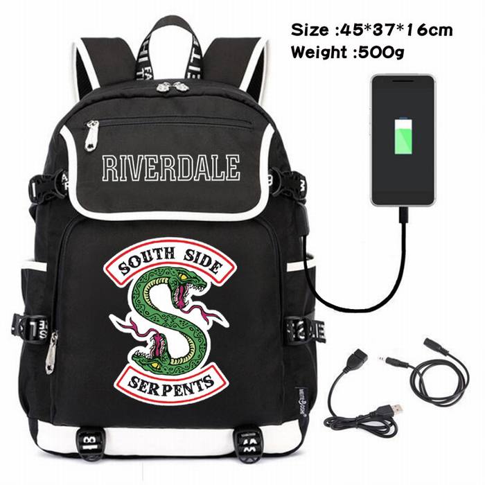 河谷镇-130 动漫600D防水帆布双肩包USB充电数据线背包