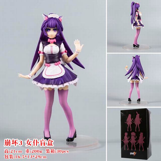 崩坏3 女仆芽衣琪亚娜 盲盒盒装手办摆件模型 约21CM 约200G 彩盒尺寸:16.5X13X29CM 一箱30个