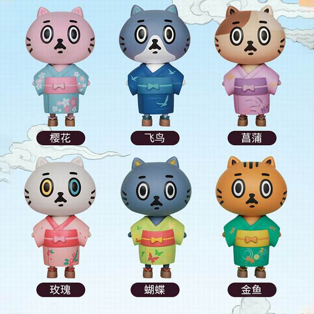 干支猫和服系列 盲盒 潮玩盒装手办摆件模型 高度6.3CM 盲盒尺寸:4.5X4.5X7CM 8只一盒 一箱8盒